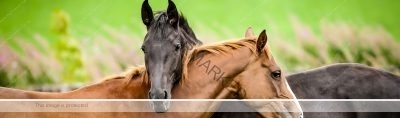 Two horses embracing.