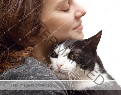 beautiful young woman with monochrome black and white cat isola